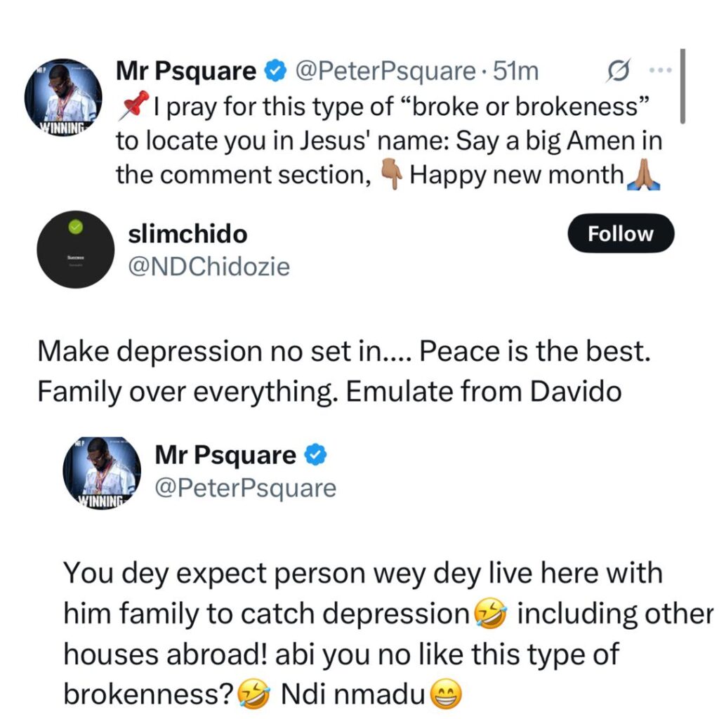 Peter Okoye replies X user who asked him to emulate Davido and allow peace reign between him and his brothers