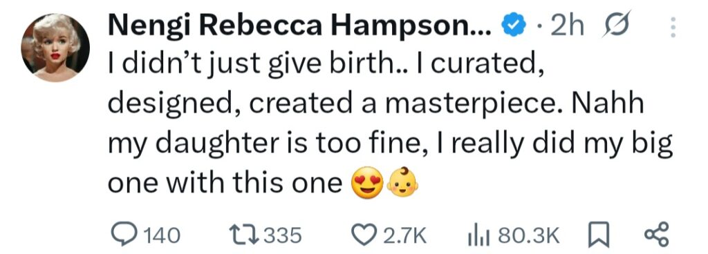 In her post, Nengi confidently said she didn’t just give birth but actually designed and created a masterpiece, proudly adding that her daughter is “too fine” and that she “really did her big one” this time.