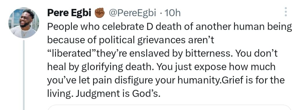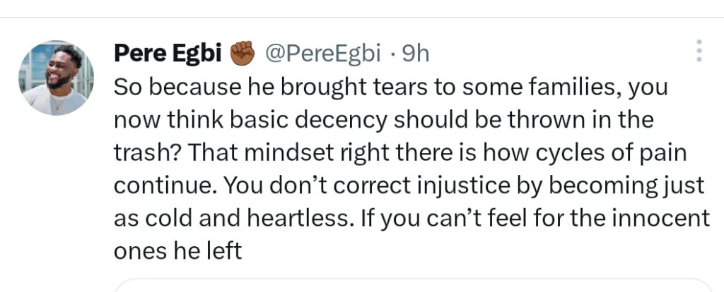 “You don’t correct injustice by becoming just as cold and heartless… Celebrating death doesn’t heal, it simply mimics the cruelty we claim to oppose.”