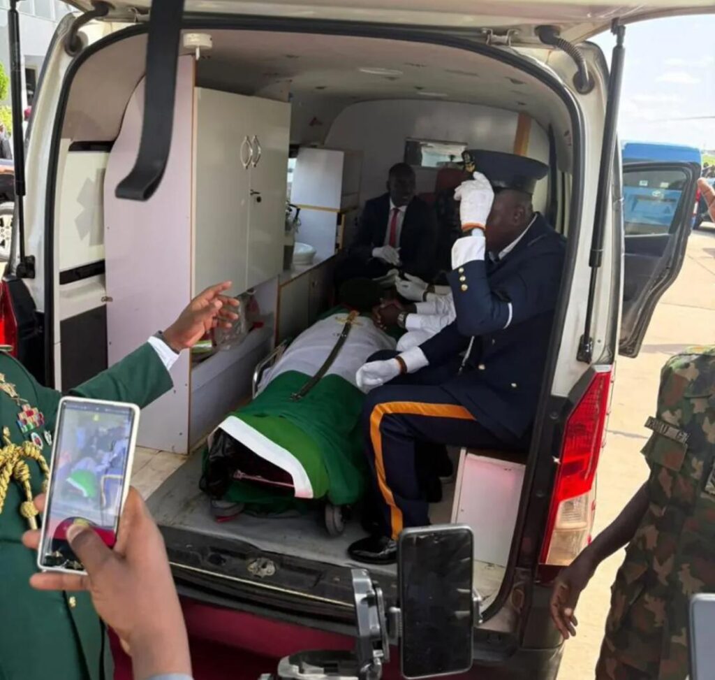 As the casket was being taken out of the aircraft, Aisha, Zahra, and other close relatives couldn’t hold back their emotions. They cried as they watched the coffin being carefully removed and placed for onward movement to his final resting place.