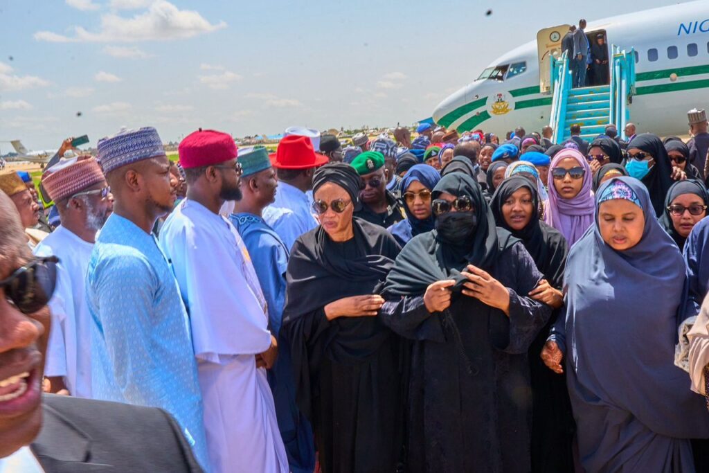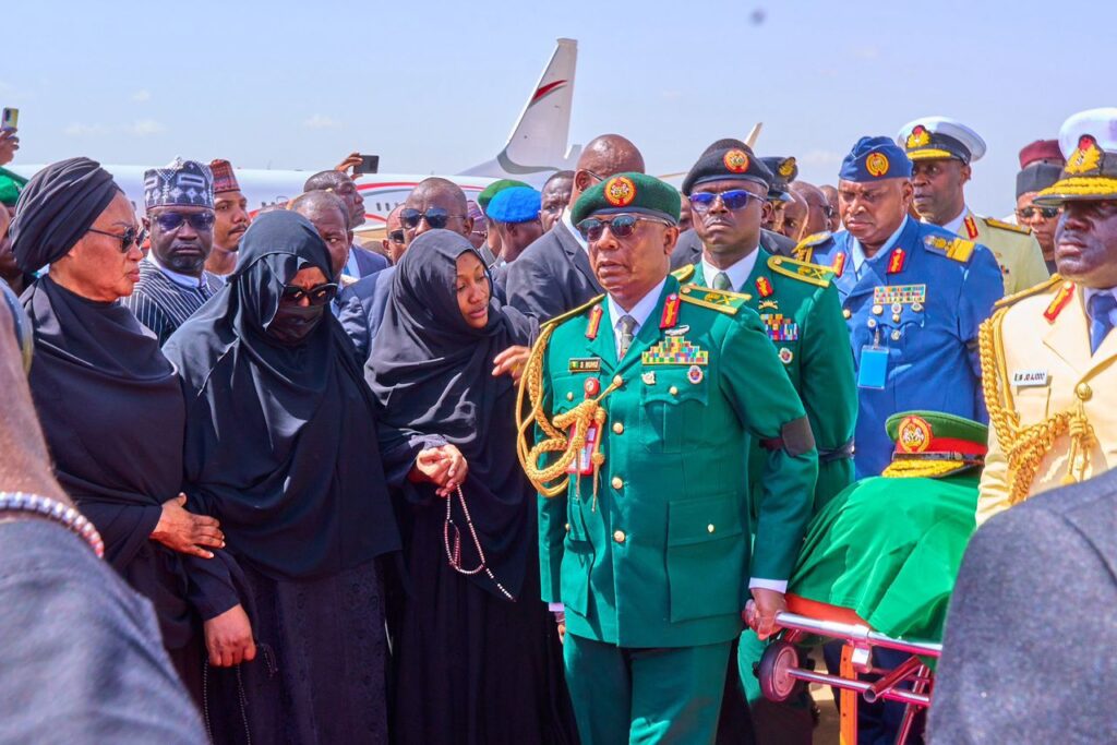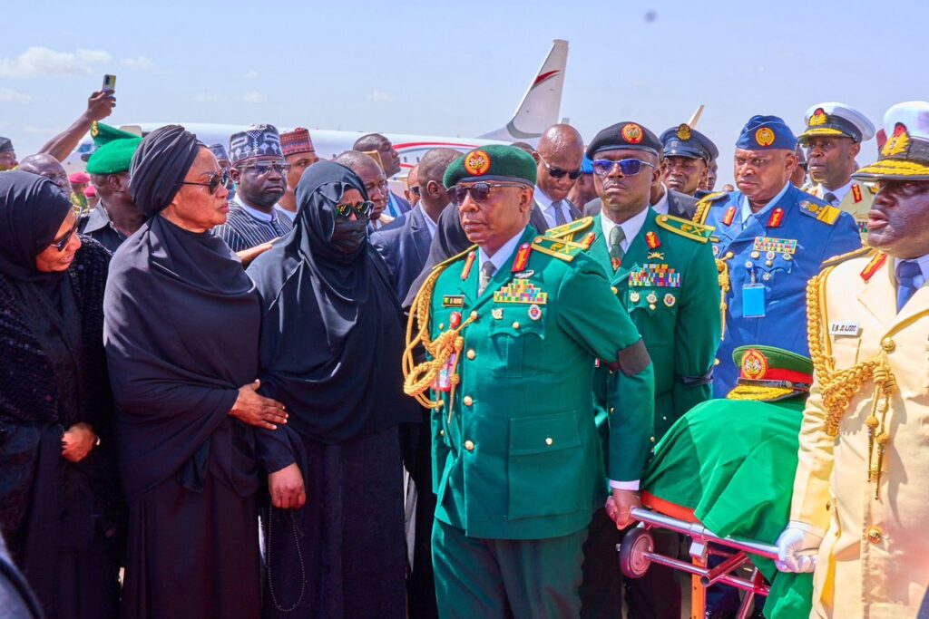 Former First Lady, Aisha Buhari, and their daughter, Zahra Buhari Indimi, were among those present when the plane carrying Buhari’s remains landed.