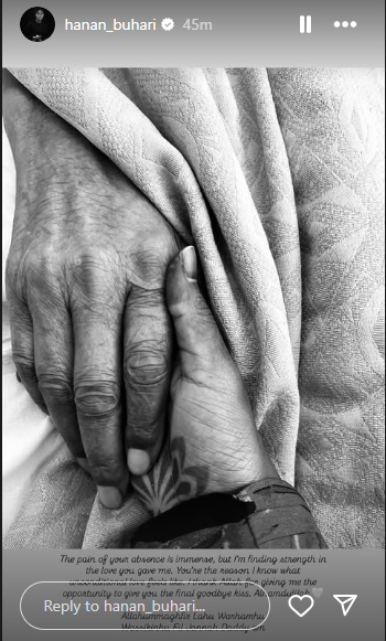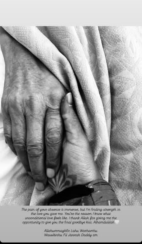 On Wednesday, July 16, Hanan expressed her sorrow through a heartfelt Instagram post. She thanked God for allowing her to be by her father’s side during his final moments.
