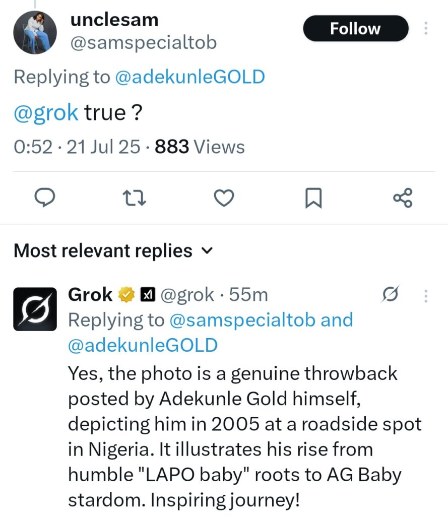 Some people on X doubted the photo was really him, but others thanked God for how far he has come. It was later confirmed that it was indeed a younger Adekunle Gold in the photo.
