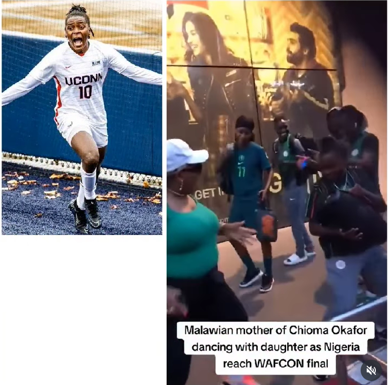 Super Falcons star Chioma Okafor dances with her Malawian mum after WAFCON final qualification