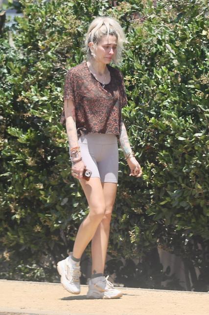 The 27-year-old model appeared visibly upset during her solo stroll on Wednesday, July 23. She wore a casual outfit—bike shorts and a loose-fitting top—and had her blonde hair tied in a high ponytail.