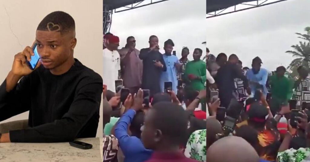Moment stage collapsed while influencer, Ola of Lagos was speaking at an event in Abia State (Video)
