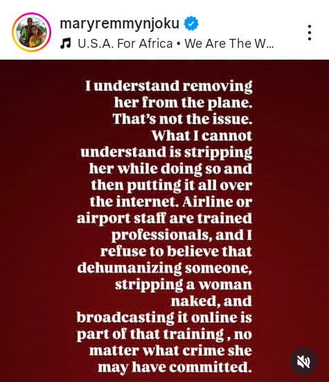 According to Njoku, escorting the passenger off the plane was understandable, but exposing her body and sharing the video online was humiliating and inhumane.