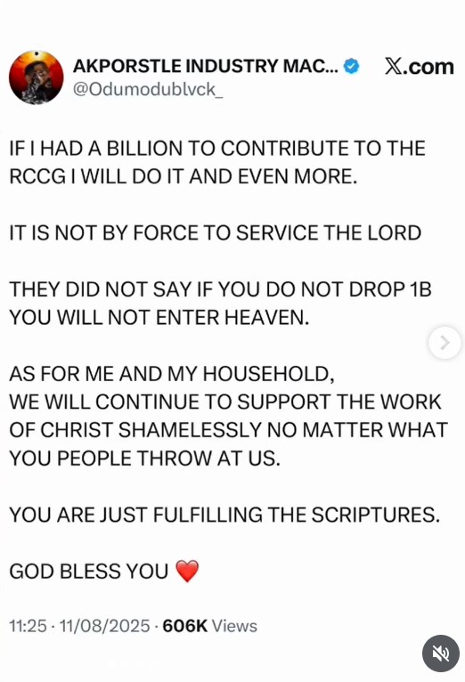 Taking to his X account, Odumodu explained that if he had such an amount, he would give it without hesitation, adding that serving God is a personal choice, not something forced on anyone.