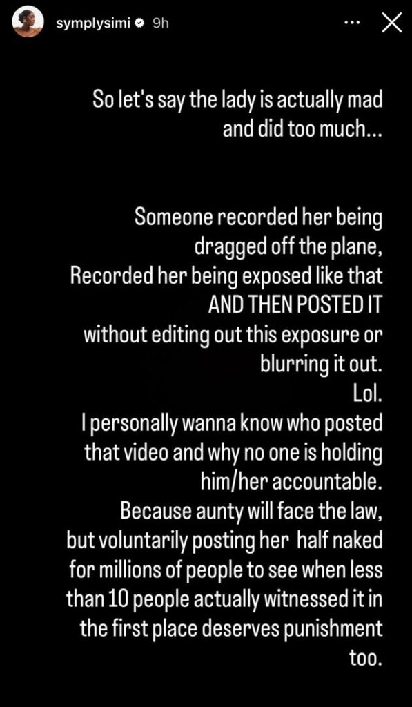 Taking to her Instagram Stories, Simi explained that the situation went beyond Comfort’s own actions on the flight.