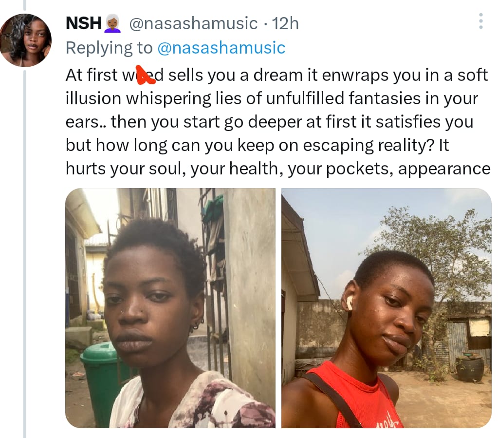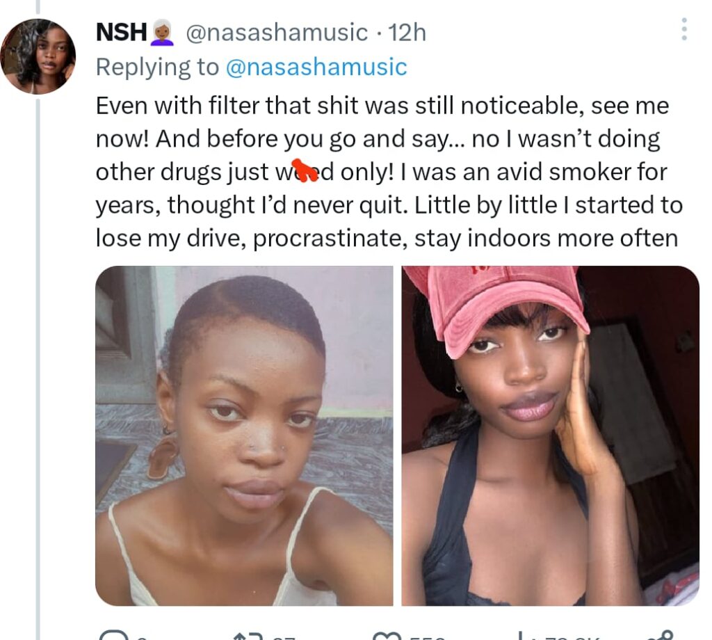“It’s not just w**d” — Lady gets candid about quitting marijuana after years of heavy use