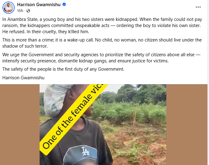 They tried to force the boy to harm his own sister, but he refused, and they killed him. This is not just a crime; it is a wake-up call. No child, woman, or citizen should live in fear of such evil,” Gwamnishu said.