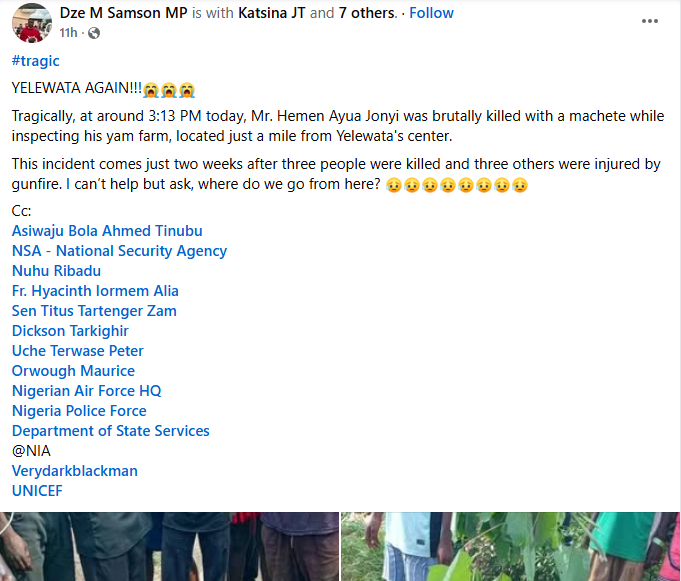 The victim, Mr. Hemen Ayua Jonyi, was reportedly attacked with a machete while he tried to reach his yam farm, situated less than a mile from the village square.