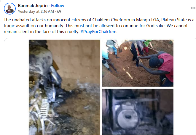Suspected herdsmen attacked Tim village in Chakfem District, Mangu Local Government Area of Plateau State on Tuesday evening, August 19, 2025. The violence left five people dead and destroyed 10 thatched homes.