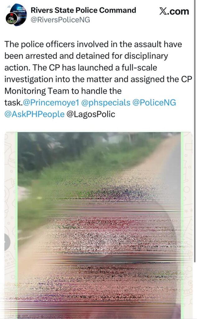 Reacting to the viral video, the spokesperson of the Rivers State Police Command, SP Grace Iringe-Koko, confirmed that the officers involved in the incident have been arrested and detained.