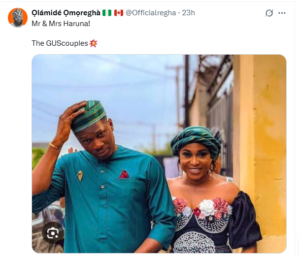 Olamide also shared a recent photo of the couple on Sunday, August 24, captioning it, “Mrs. and Mrs. Haruna. The GUS couple.”