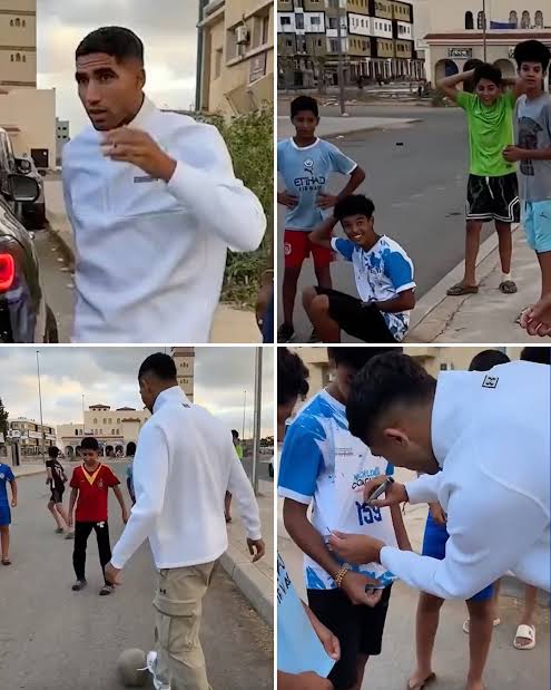 The kids were excited and amazed to see a world-class player like Hakimi sharing the pitch with them in such a humble way. The moment quickly spread online, showing a different side of the football star—one that connects deeply with his roots and love for the game.
