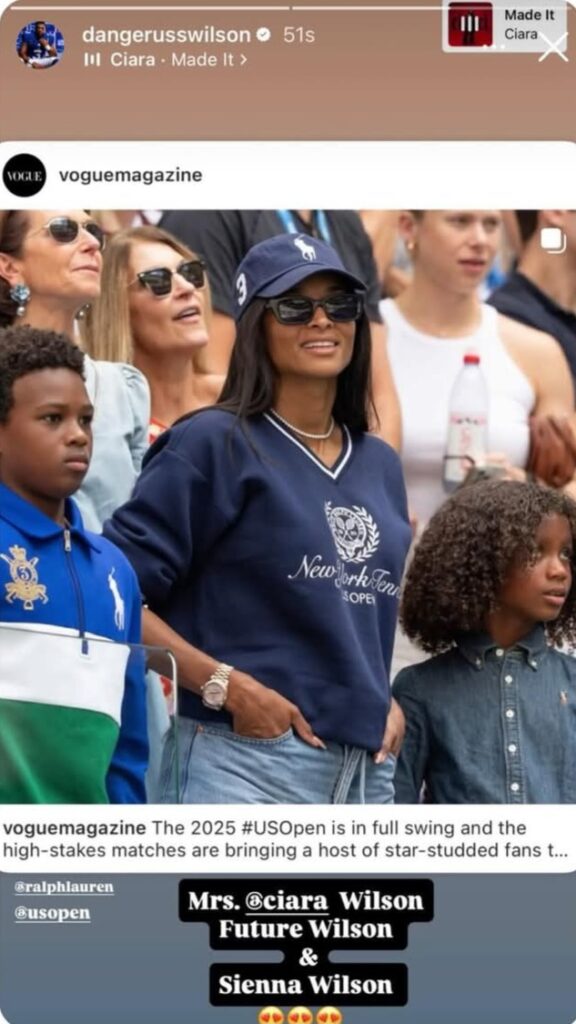 The change became widely known when Russell shared a family photo from the U.S. Open, captioning it “Mrs. @ciara Wilson, Future Wilson & Sienna Wilson,” which made fans notice the updated name.