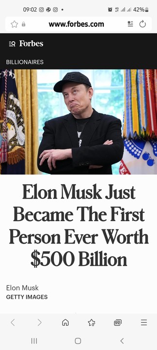 Elon Musk Now Worth $500 Billion, The First Person Ever- Forbes