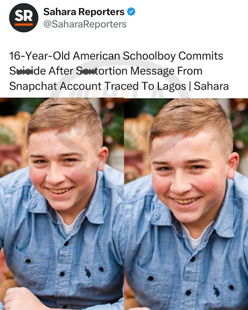 A heartbreaking story has emerged after a 16-year-old boy in the United States took his own life following an online sextortion scheme traced to Lagos, Nigeria.