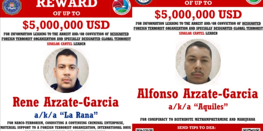 The United States has announced a combined $10 million reward for information leading to the arrest or conviction of René Arzate-García and Alfonso Arzate-García. The bounty, offered under the Narcotics Rewards Program, places $5 million on each brother for their alleged roles in the Sinaloa Cartel.